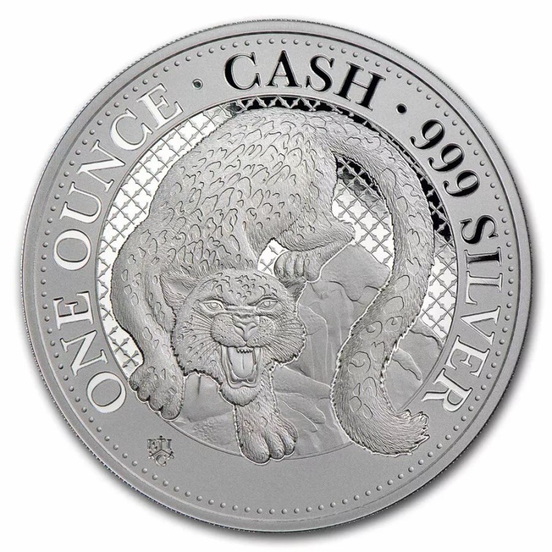 Остров Святой Елены: инвестиционная серебряная монета Дикая природа Индии. Снежный леопард 2024, 31,1 г чистого серебра (0,999)
