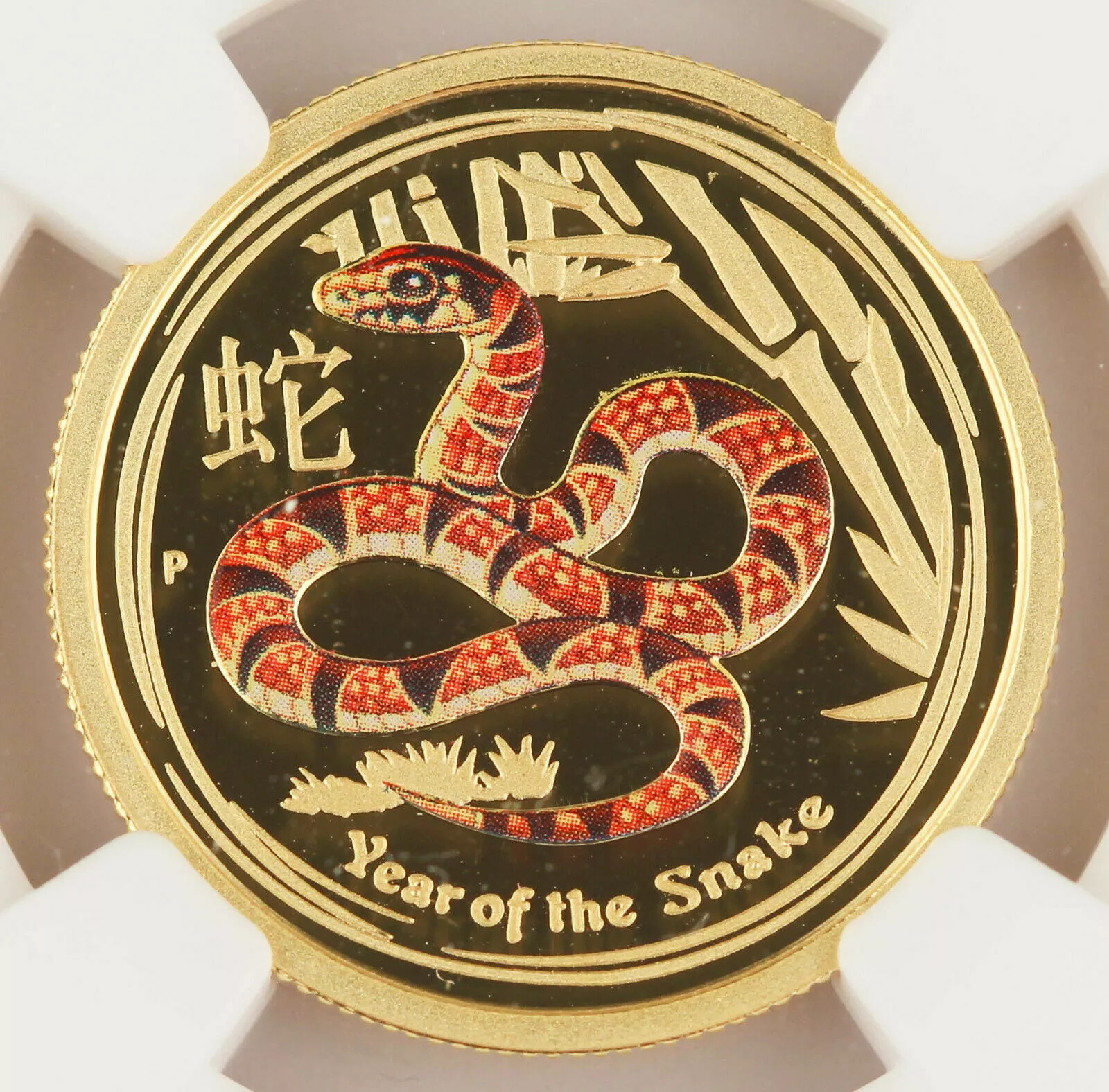 Золотая монета Австралии Год Змеи 2013 Proof цвет 1/4 oz