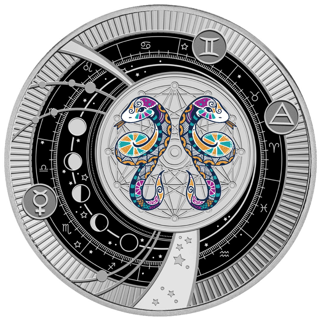 Серебряная монета Камеруна Близнец 2025 Proof цвет 10 г