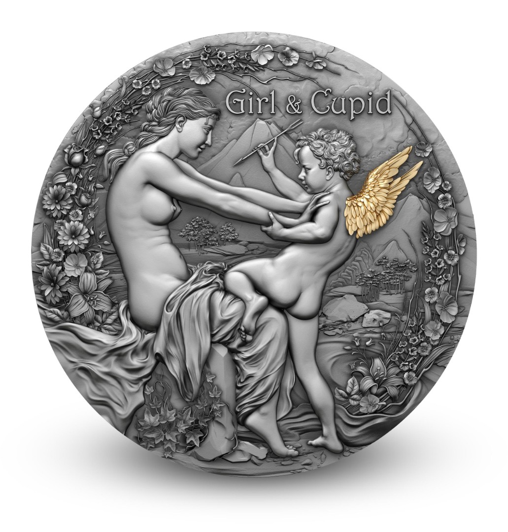 Эта изысканная серебряная монета весом 2 унции воплощает сцену поэтической любви между девушкой и Купидоном — символом вдохновения и страсти. Античная отделка, великолепный рельеф и выборочная позолота подчёркивают утончённую красоту композиции. На реверсе изображена изящная девушка, принимающая любовь очаровательного Купидона, — ода человеческим чувствам и вечной гармонии. Монета поставляется в элегантном футляре с сертификатом подлинности. Ограниченный тираж — 500 экземпляров по всему миру.
