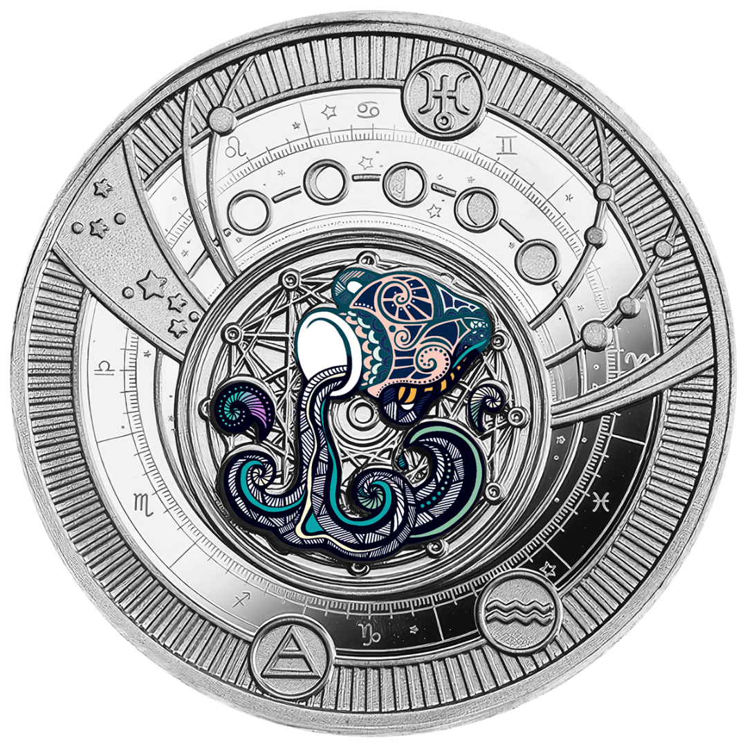 Серебряная монета Камеруна Водолей 2025 Proof цвет 10 г