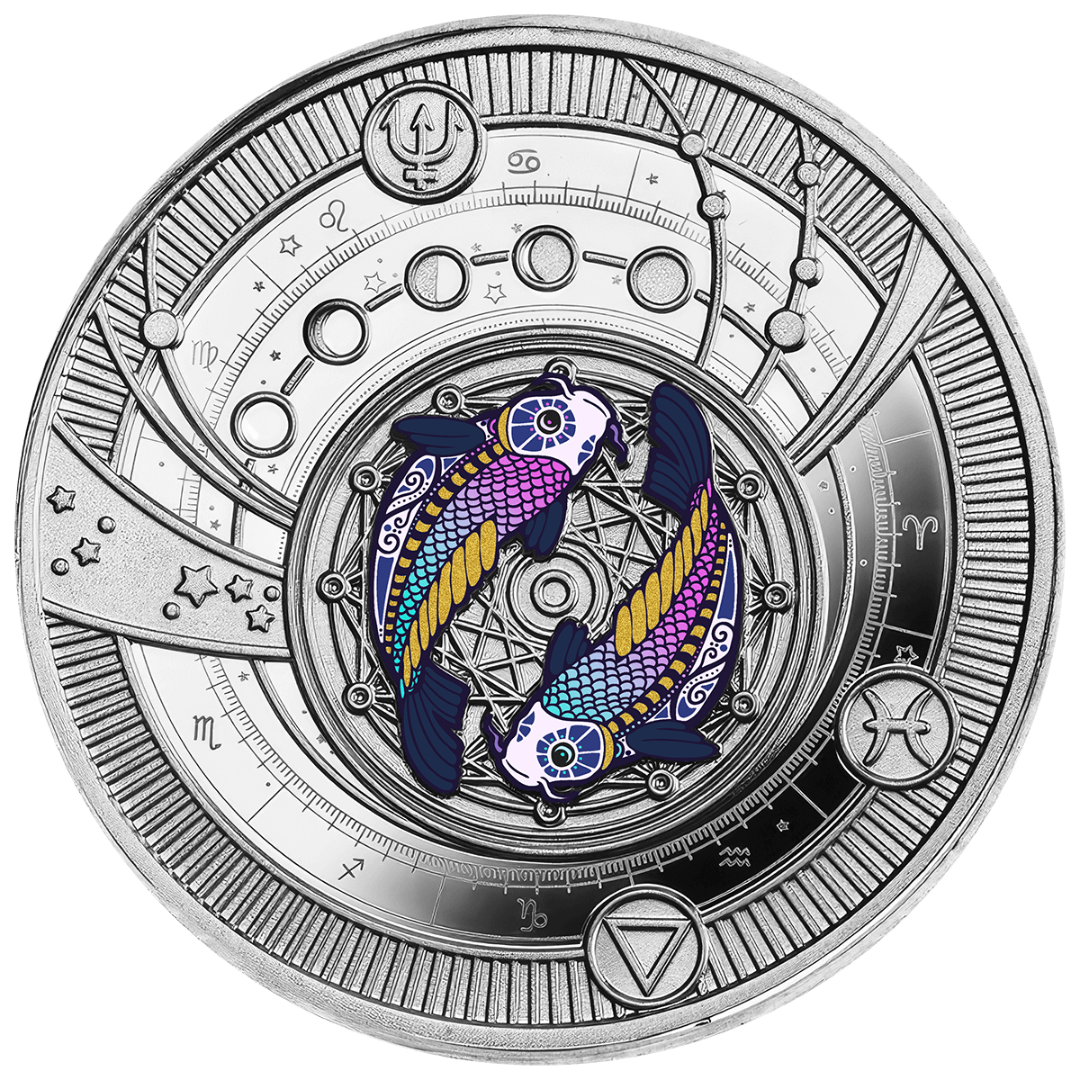 Камерун: коллекционная серебряная монета Рыбы 2025, Proof 10,0 г чистого серебра (0,999)