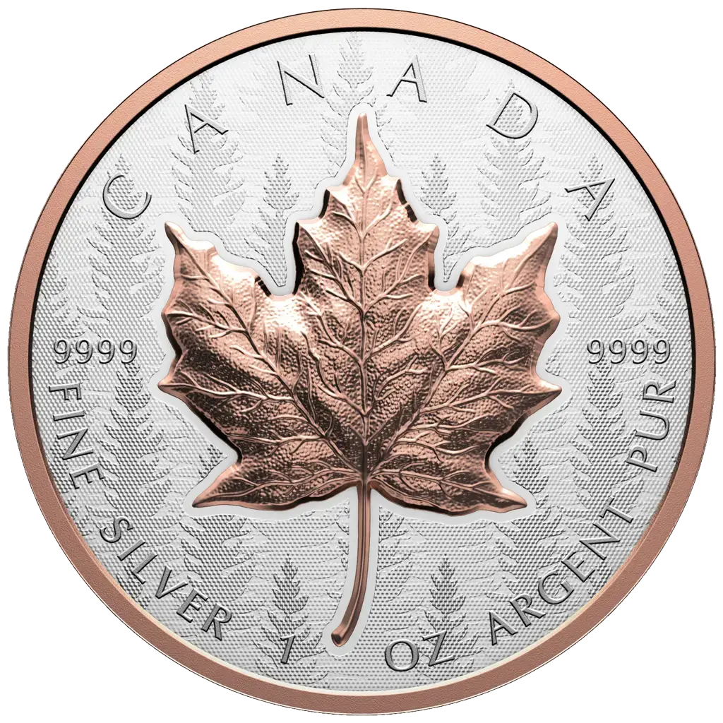 Канада: коллекционная серебряная монета Кленовый лист 2025, реверс Proof, ультравысокий рельеф, розовое золото, 31,39 г чистого серебра (0,9999)