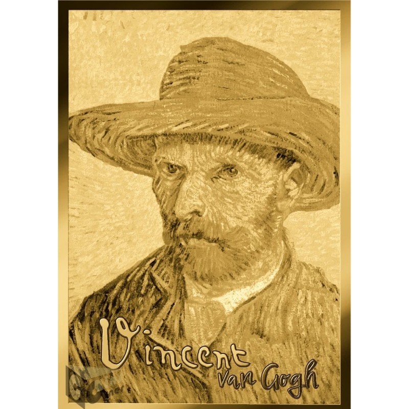 Чад: коллекционная золотая монета Винсент Ван Гог. Автопортрет в соломенной шляпе, 0,031 г чистого золота (0,999)