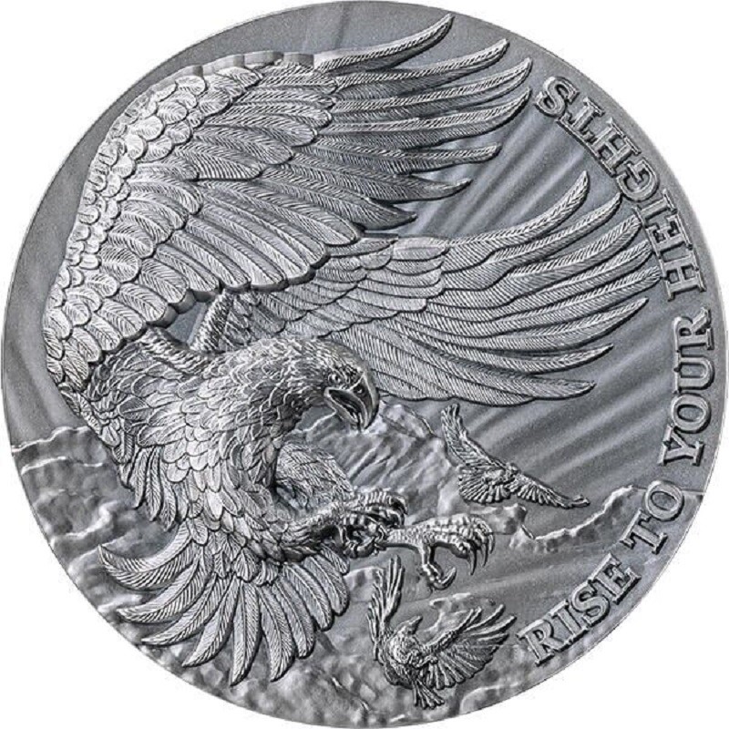 Эта изящная серебряная монета весом 2 унции входит в серию «Цитаты из жизни» и посвящена величественному орлу — символу силы и превосходства. На реверсе изображён орёл, парящий над вороном, что олицетворяет победу духа и внутреннюю непоколебимость. Монета выполнена в качестве античной отделки и высоком рельефе, что подчёркивает художественную глубину дизайна. Поставляется в элегантном футляре с сертификатом подлинности, тираж ограничен всего 500 экземплярами по всему миру.