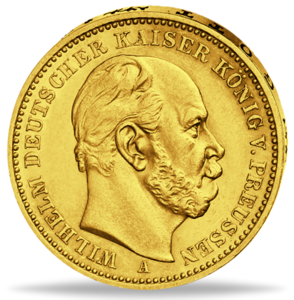 Германская империя: золотая коллекционная монета 20 марок Вильгельм I (1871-1888), 7,17 г чистого золота (0,900)