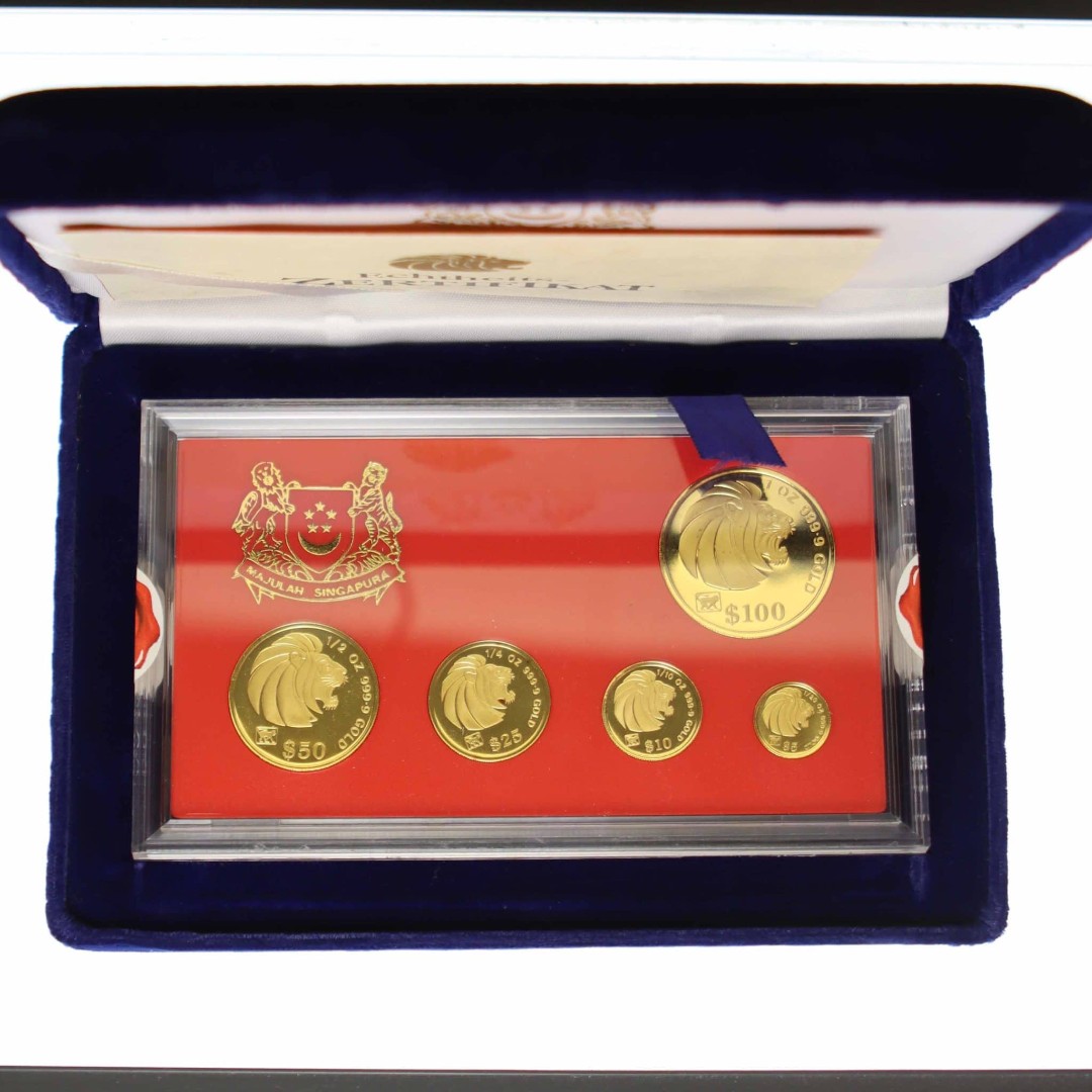 Золотые монеты Сингапура Лев 1992 Proof набор 59,07 г