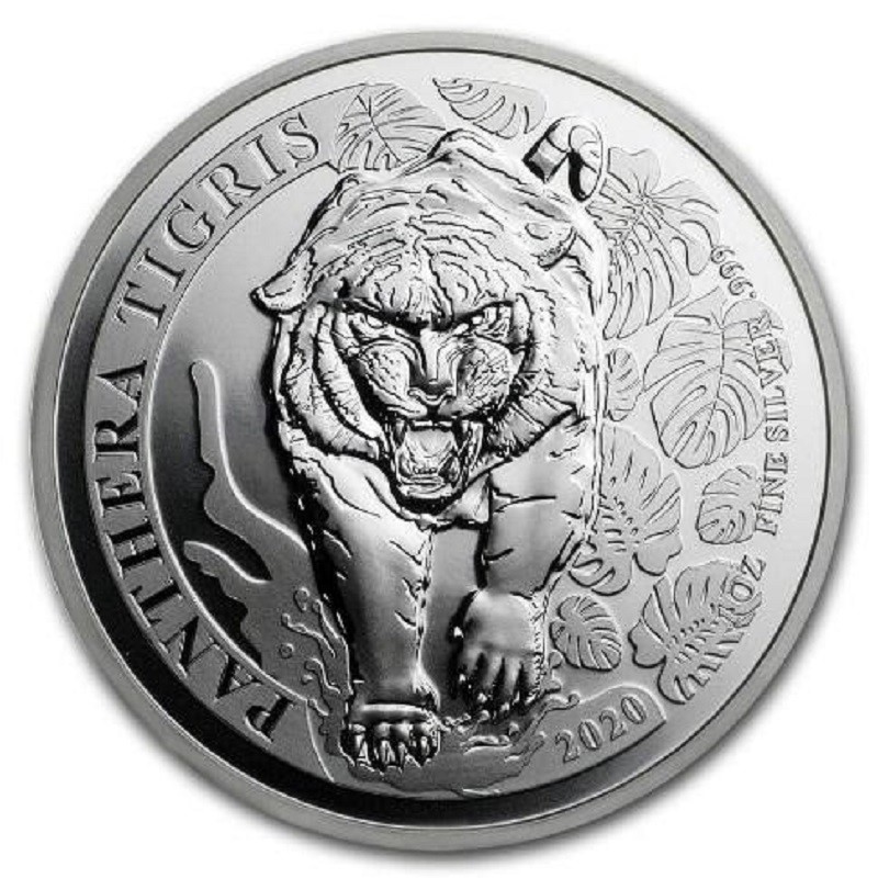 Лаос: коллекционная серебряная монета Индокитайский Тигр 2020, 31,1 г чистого серебра (0,999)