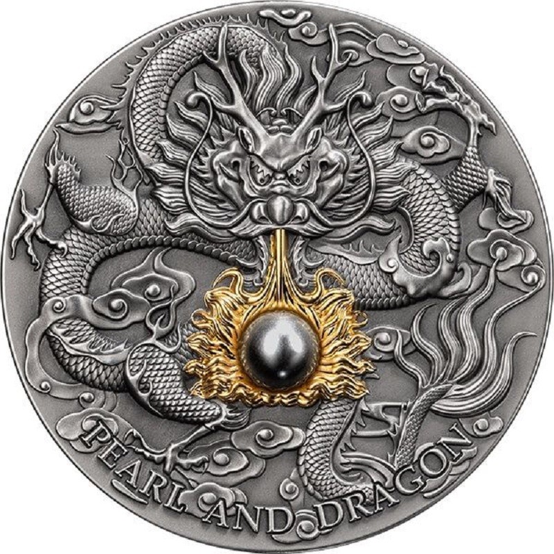 Эта невероятная серебряная монета весом 2 унции посвящена самому знаменитому и почитаемому существу китайской мифологии — дракону, символу силы, мудрости и удачи. Она выполнена в качестве античной отделки с впечатляюще высоким рельефом, частично покрыта золотом и украшена эффектной вставкой из чёрного жемчуга. Художественное оформление передаёт образ китайского дракона с волшебной жемчужиной, вокруг которой выборочное золочение создает эффект его огненного дыхания. Монета поставляется в футляре и сопровождается сертификатом подлинности. Ограниченный тираж составляет всего 500 экземпляров.