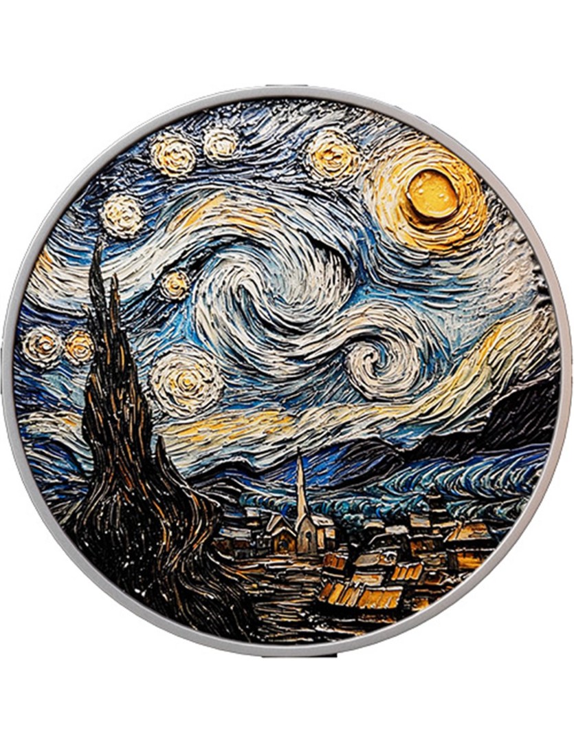 Камерун: коллекционная серебряная монета Звездная ночь 2025, 62,2 г чистого серебра (0,999)