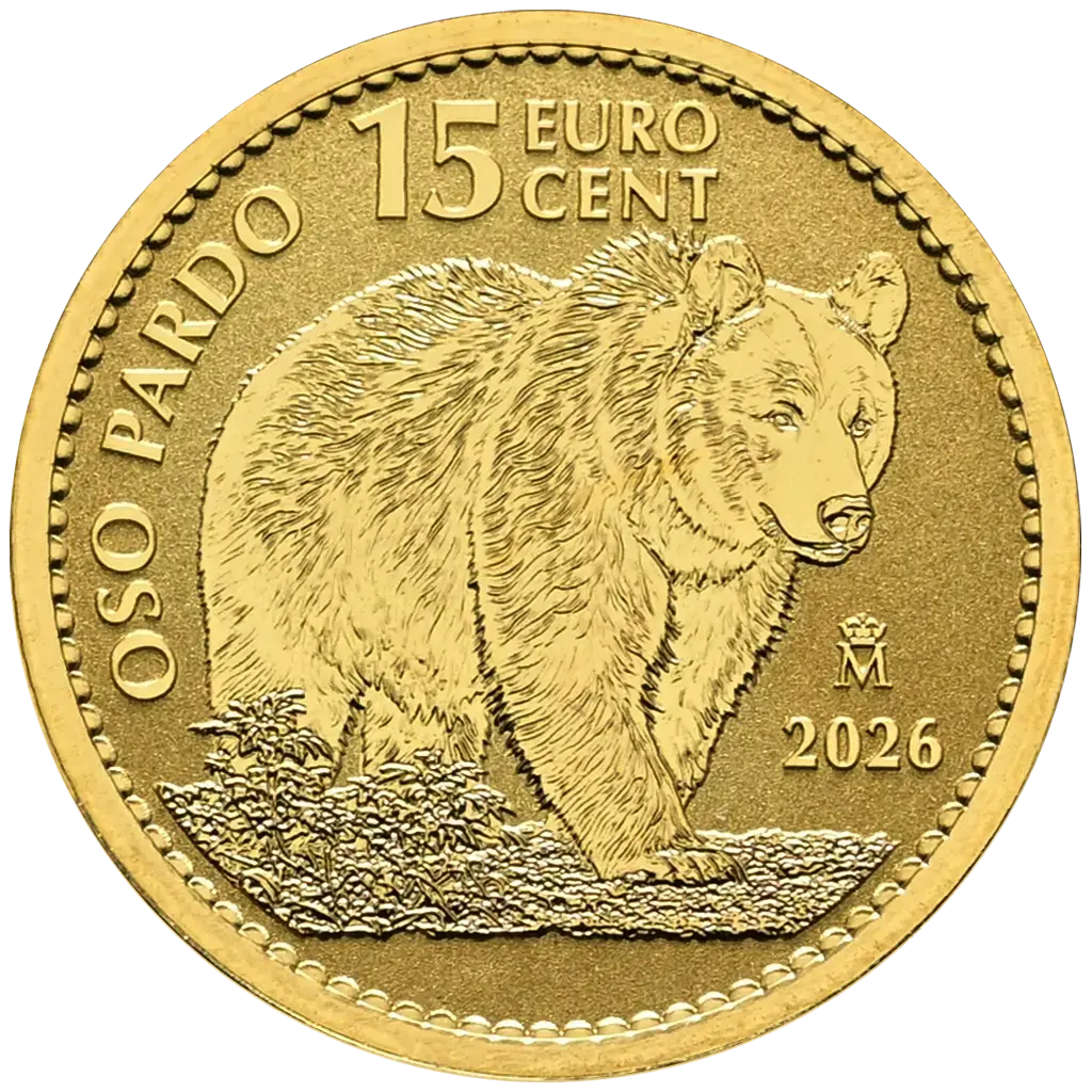 Испания: коллекционная золотая монета Бурый Медведь 2026, 3,11 г чистого золота (0,9999)